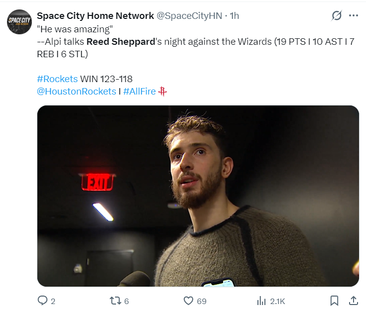 休媒:求上帝保佑,让谢泼德一直留在先发阵容中吧,有他打先发整个火箭的团队表现都要好得多。