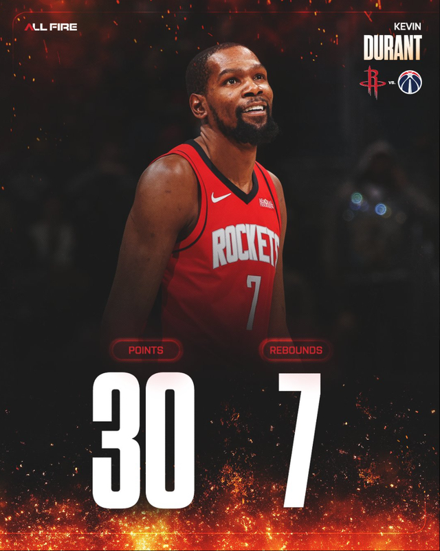 九游体育在线直播、九游体育足球直播、nba直播、电竞直播平台、九游体育赛事视频、体育直播平台-连续三场30+队史首人!杜兰特1点成历史第二 37岁助火箭更上一层楼|凯文·杜兰特|阿尔佩伦-申京|休斯敦火箭队|华盛顿奇才队|篮板_新浪体育_新浪新闻