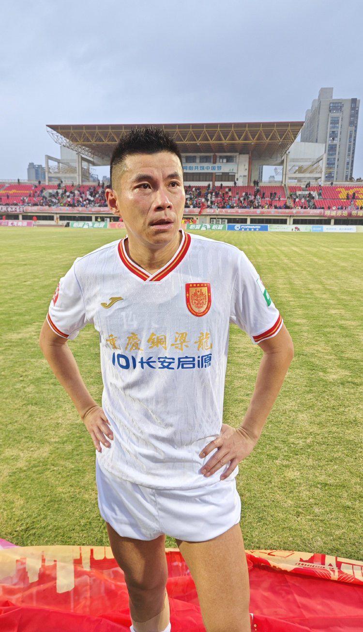 2025年11月8日,重庆铜梁龙冲超成功,黄希扬泪洒球场。记者 金鑫 摄